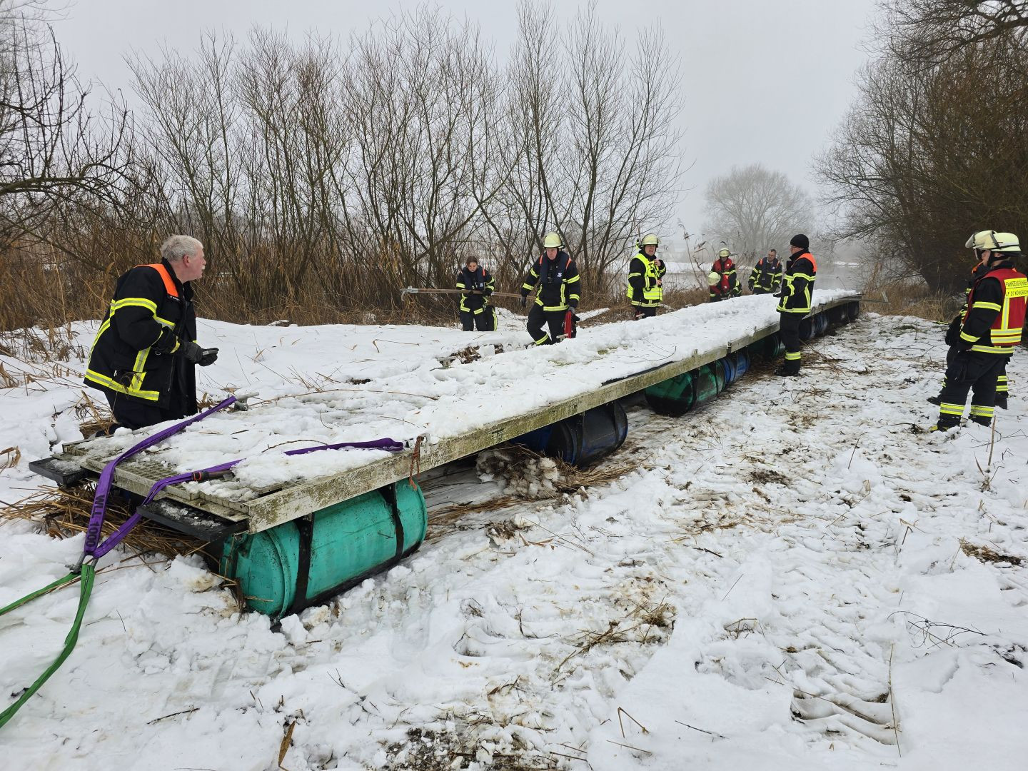 Durch aufmerksame Passanten wurde der Feuerwehr- und Rettungsleitstelle gemeldet, dass sich in der Este in Estbrügge ein ca. 15 Meter langer Bootsanleger losgerissen hatte. Dieser trieb jetzt in der Este mit auflaufendem Wasser in Richtung Buxtehude.