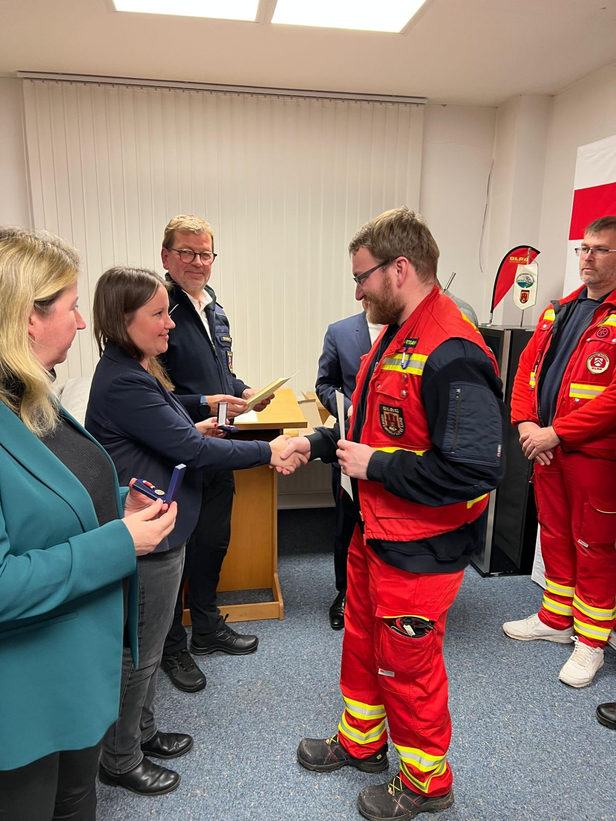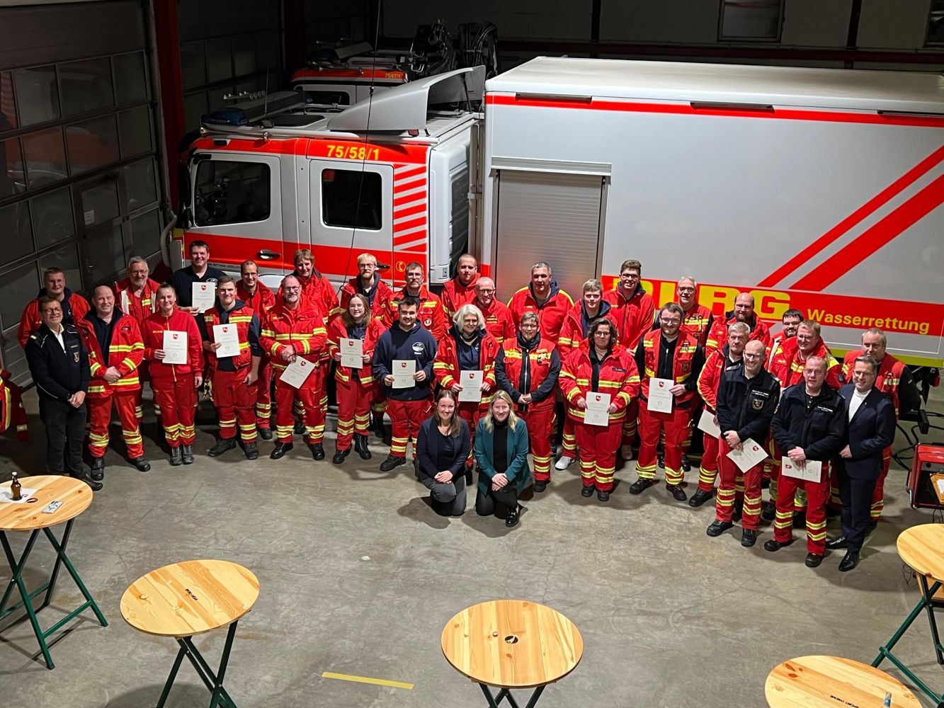 Gewürdigt wurde das Engagement der Retter während der kritischen Hochwasserlage zum Jahreswechsel 2023/2024. Die Einheiten aus dem Landkreis Stade waren dabei im schwer betroffenen Heidekreis im Einsatz, um Deiche zu sichern und die Bevölkerung zu schützen. Die Alarmierung erfolgte dabei in zwei Wellen: Ende 2023 rückten die Kräfte als Teil des „DLRG Niedersachsen Landeseinsatzzug Nord“ aus, gefolgt von einem weiteren Einsatz Anfang 2024 als „Wasserrettungszug des Landkreises Stade“.