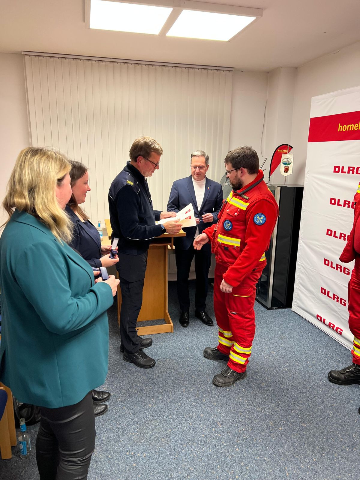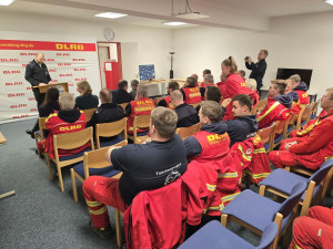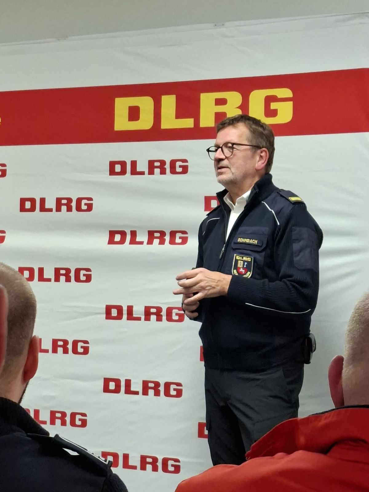 Nach der offiziellen Begrüßung ergriff Robert Rink, Leiter der Koordinierungsstelle des DLRG Landesverbandes Niedersachsen, das Wort. Er skizzierte den Anwesenden noch einmal detailliert den Einsatzablauf sowie die Alarmierungswege und verdeutlichte die logistischen Herausforderungen, die von den Ehrenamtlichen in kürzester Zeit bewältigt wurden.